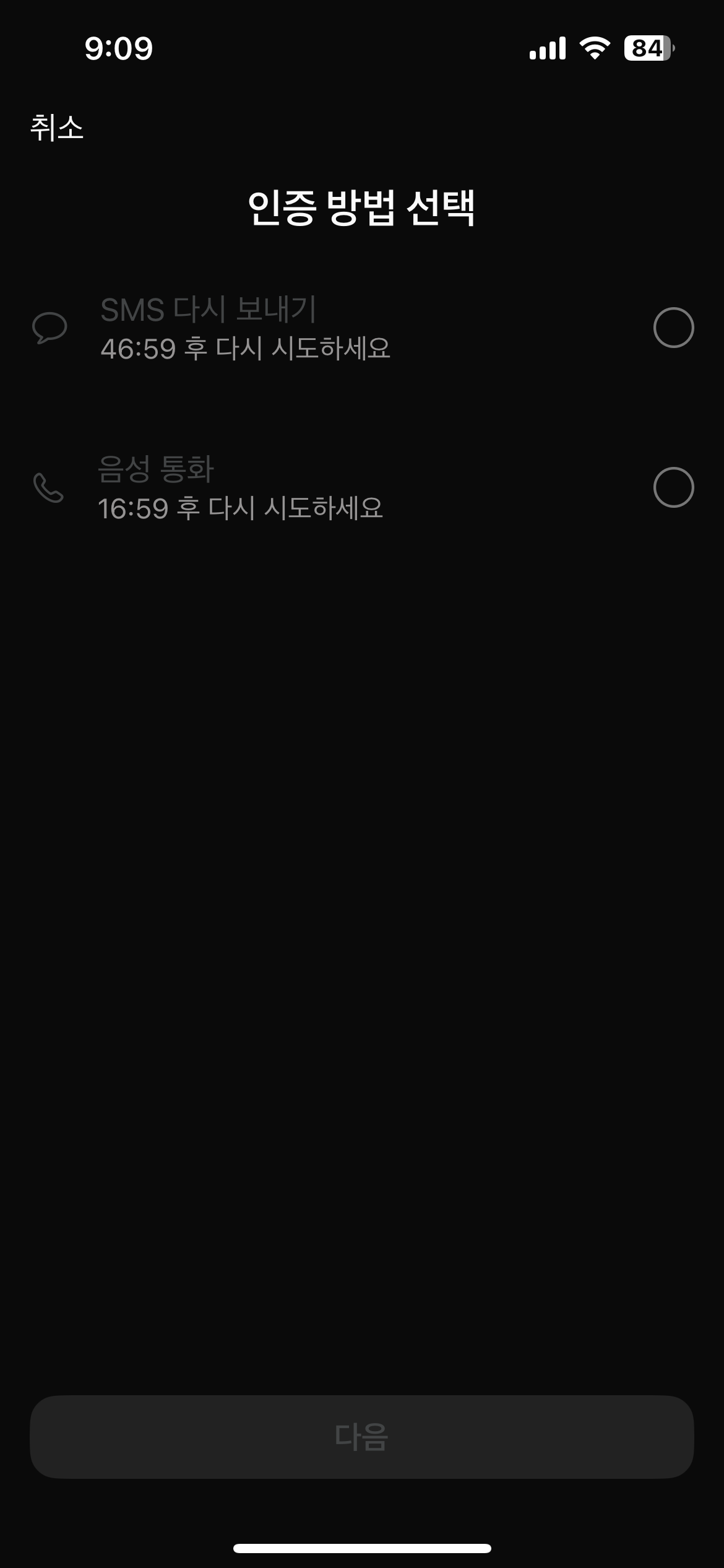 1)음성 인증이 전화가 오자마자 끊기는 경우, 다른 번호로 인증 요청을 시도해본다.