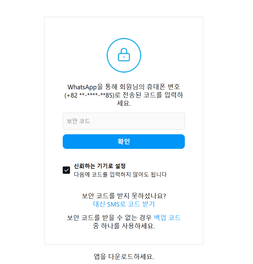 3)WhatsApp이 아닌 다른 인증 수단(예: 이메일)으로 코드 받기를 시도해본다.